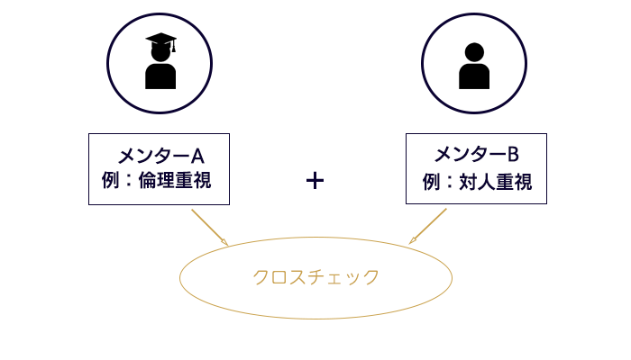 ただ、1人のメンターとだけ壁打ちをすると自然とそのメンターの思考の癖が移ってしまいます。